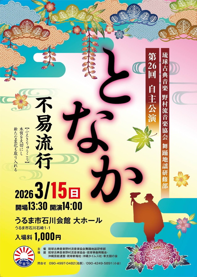 | 公演名 | 琉球古典音楽野村流音楽協会 舞踊地謡研修部 第26回 自主公演「となか」 不易流行 |